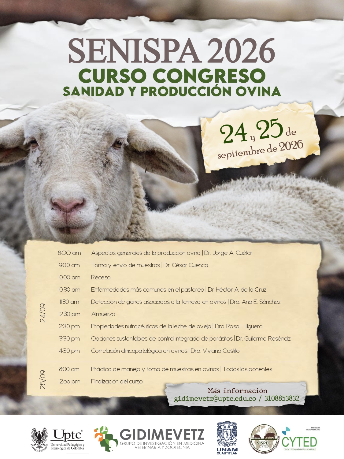 | 1 ponencia + inscripción al curso de producción de ovinos | $280.000 | Septiembre 2026 |